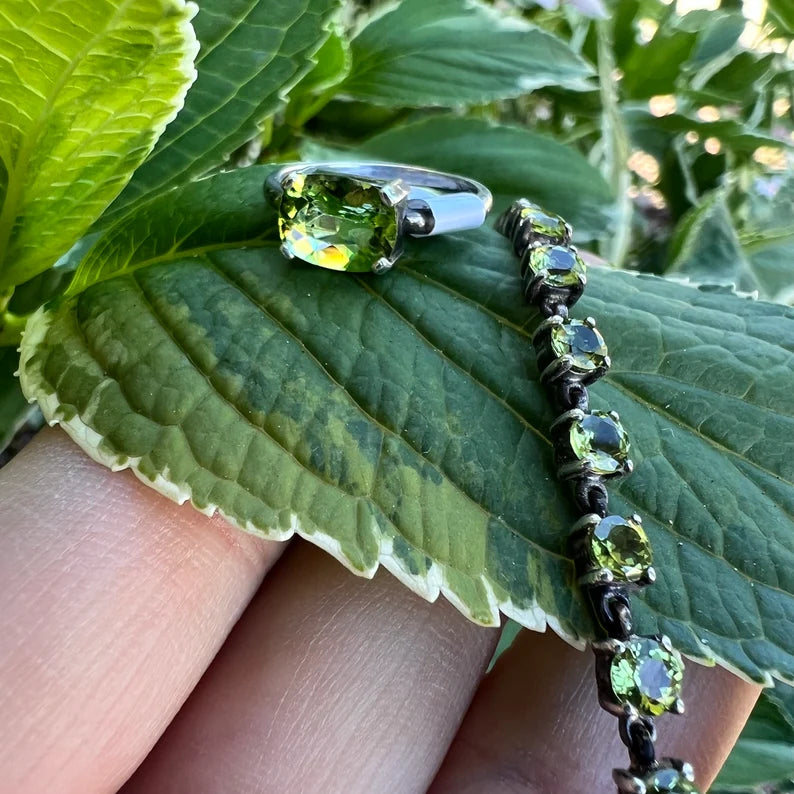 Oxidized sterling silver natural peridot gemstone ring. The gem is a 2ct (approximately 7x9mm) cushion cut. Ring size 6
