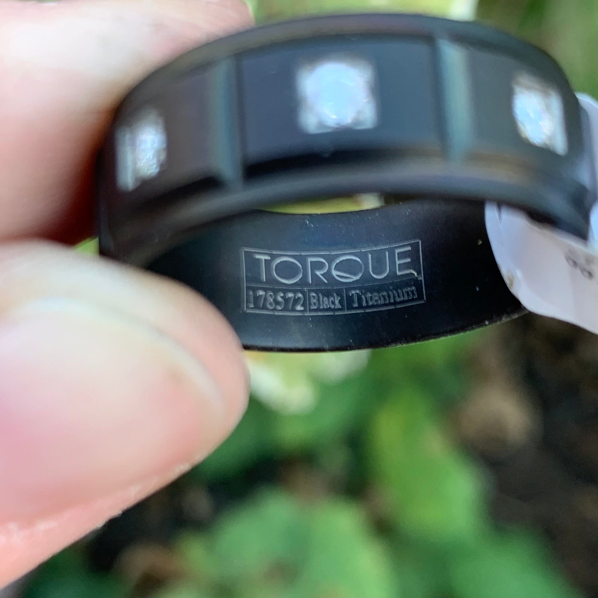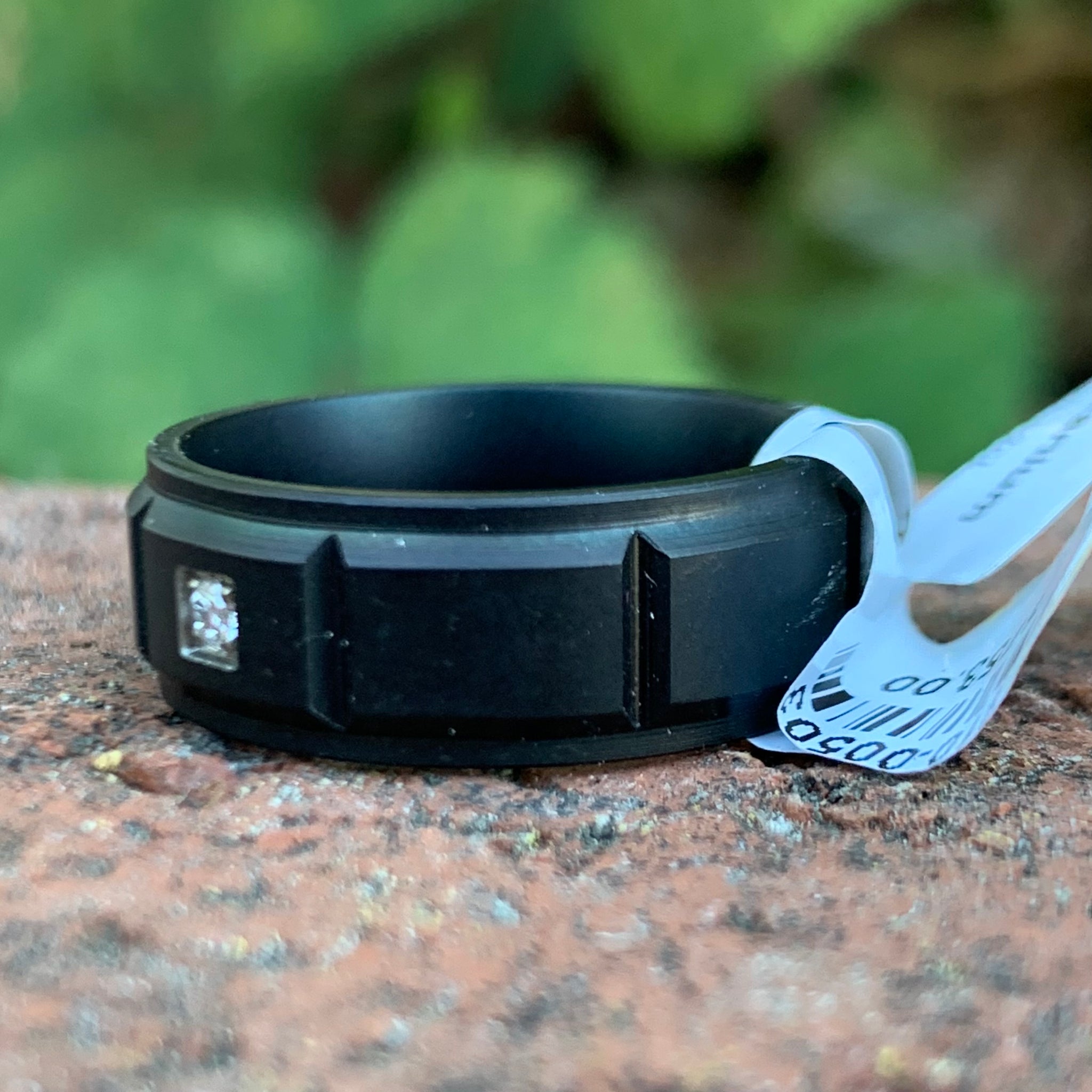 $270 for this 8mm black titanium grooved band w/ 0.12cttw diamonds size 10, MSRP $862. Cannot be sized.