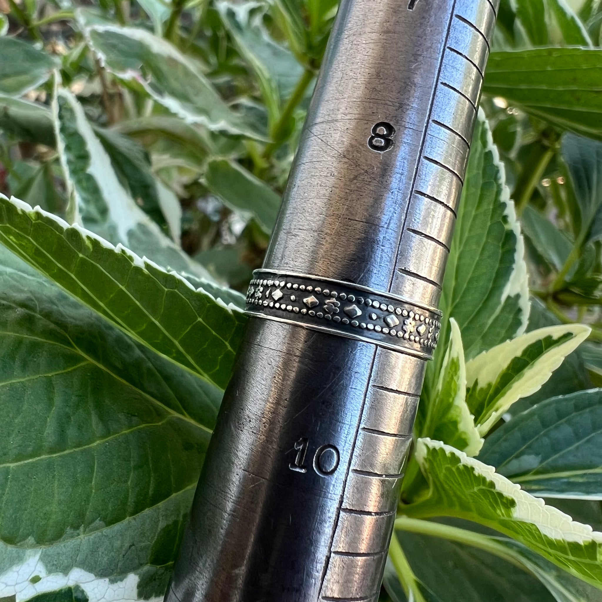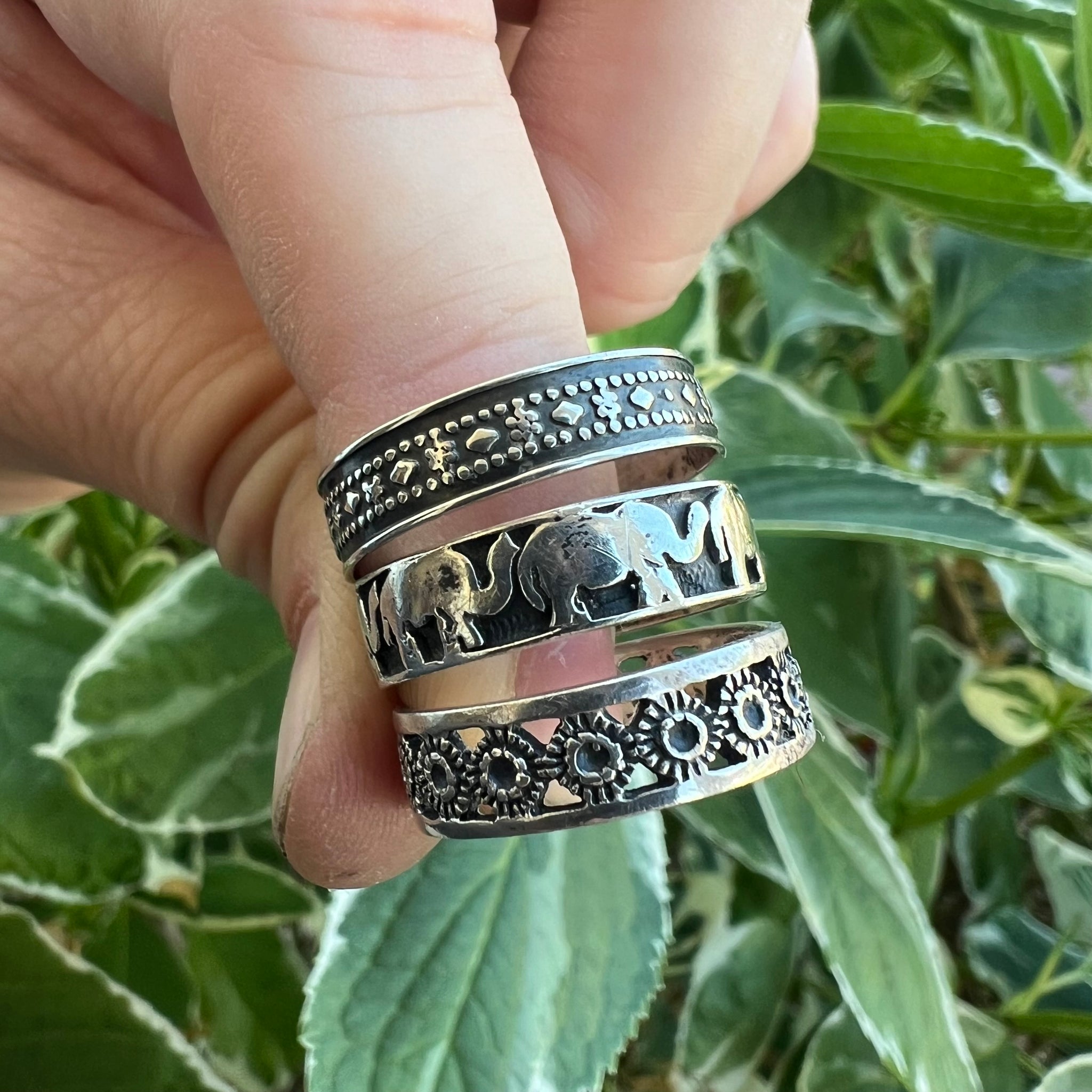 Choose one of three oxidized and textured sterling silver stackable band rings: