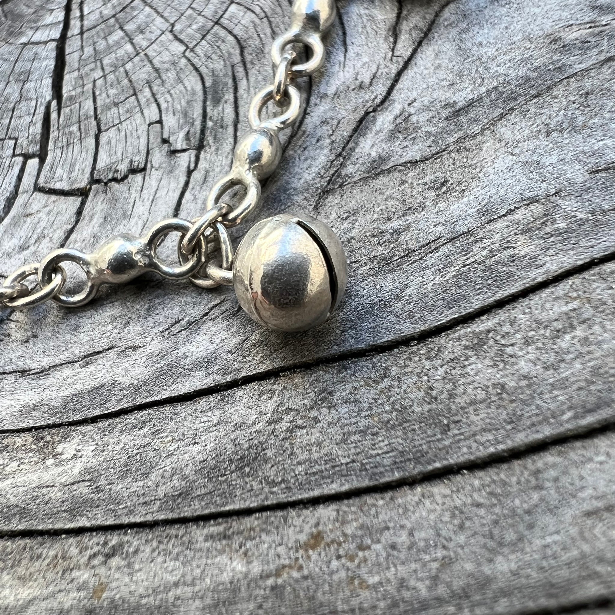 Sterling silver 5mm jingle charm dangle bracelet, measuring 7.25” long
